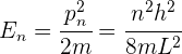 la función de onda obtenida de la ecuación de Schödinger, que describe la onda de materia asociada a un electrón en un pozo infinito. Suponemos la energía potencial del electrón igual a cero, luego la totalidad de la energía del electrón atrapado es cinética. Así, la magnitud de los momentos lineales permitidos del electrón está dada por