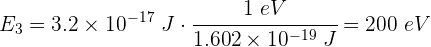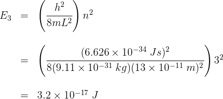 3 Un electrón se encuentra confinado en una caja de longitud 0.13 nm. La energía del electrón para el tercer estado cuántico es...