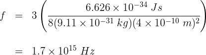 4 La frecuencia de luz emitida cuando un electrón que se encuentra confinado en una caja de longitud 0.4 nm, pasa del segundo nivel de energía al primero es...