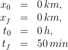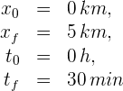 X = (25 • 2) + ((1/2) • (10 • 2^2)) [km]