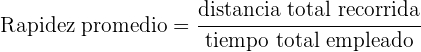 La rapidez promedio es la distancia total recorrida entre el tiempo total empleado
