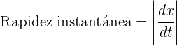 Notamos que la rapidez instantánea es igual a la magnitud positiva de la velocidad instantánea, por ello son indistinguibles salvo el signo.