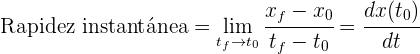 se obtiene tomando el límite en la fórmula de rapidez promedio