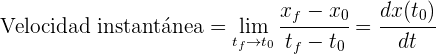 se obtiene tomando el límite en la fórmula de velocidad promedio
