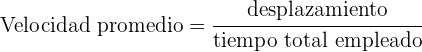 La velocidad promedio es el desplazamiento de la partícula entre el tiempo total empleado para dicho desplazamiento