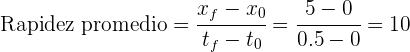 Ejemplo: Una persona corre en línea recta una distancia de 5 km y para ello emplea media hora. ¿Cuál es su rapidez promedio?