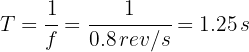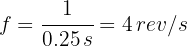 Una partícula que gira en un círculo horizontal, tiene periodo de 0.25 segundos. Calcula su frecuencia de rotación.