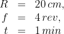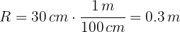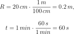 Escribimos el radio en metros y el tiempo en segundos