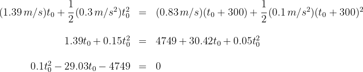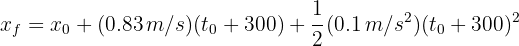 es el tiempo que tarda la segunda persona en alcanzar a la primera, esta habrá empleado 300 segundos más que la segunda, por lo que tenemos para la segunda persona