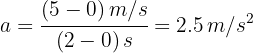 2 En el intervalo de tiempo de 0 a 2 segundos, la aceleración constante es
