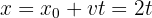 X = (25 • 2) + ((1/2) • (10 • 2^2)) [km]