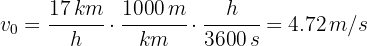2Verificamos que se tengan las mismas unidades. Notamos que la velocidad inicial está dada en kilómetros por hora, entonces la convertimos a metros por segundo