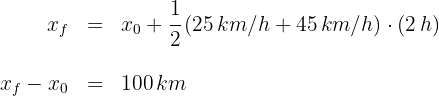 Con t= 2 [h], esa V te da un valor de 45 [km/h]. Al utilizar ese valor en la ecuación que tu planteaste, te da el desplazamiento real, el cual te da un valor de 70 [km], lo cual también se obtiene con la ecuación de itinerario de posición: