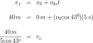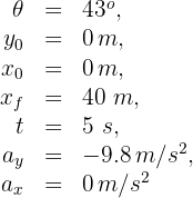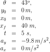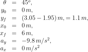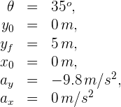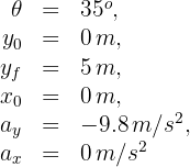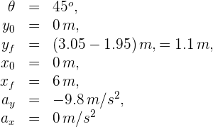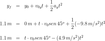 4Como en la parte vertical del movimiento la aceleración es constante, se tiene un problema de MRUA, por ello sustituimos los datos conocidos en las fórmulas de posiciones finales