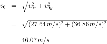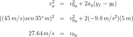 5Como en la parte vertical del movimiento la aceleración es constante, se tiene un problema de MRUA, por ello sustituimos los datos conocidos en la fórmula de velocidad final
