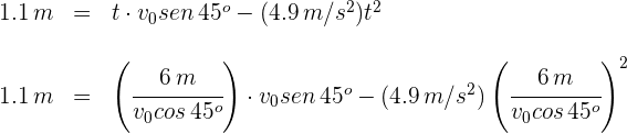 8Un basquetbolista de 1.95 metros de altura lanza el balón desde su posición a 6 metros de la canasta, que se encuentra a una altura de 3.05 metros. Si el lanzamiento lo realiza con un ángulo de