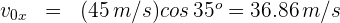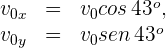3 Representamos las componentes horizontal y vertical de la velocidad inicial