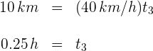 2Como la velocidad es constante por tramos, se tiene un problema de MRU, por ello empleamos la fórmula