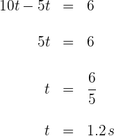 4Igualamos ambas funciones de velocidad constante y despejamos el tiempo