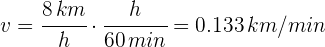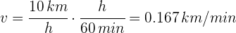 2Verificamos que se tengan las mismas unidades. Notamos que la velocidad está dada en kilómetros por hora y los resultados en minutos, entonces la convertimos a kilómetros por minuto