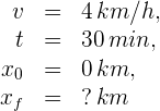 X = (25 • 2) + ((1/2) • (10 • 2^2)) [km]