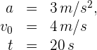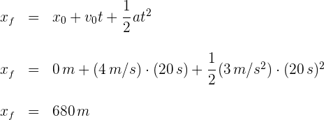 2 Con los datos anteriores podemos encontrar la posición final al cabo de 20 segundos. Como la aceleración es constante, empleamos la fórmula