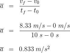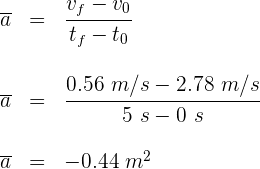 2Sabemos que la aceleración es constante, por lo que empleamos la fórmula de aceleración constante
