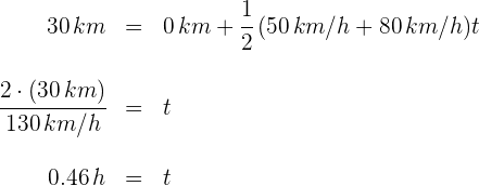 9Un automóvil se desplaza en línea recta una distancia de 30 kilómetros, iniciando a 50 km/h y terminando a 80 km/h. Si la aceleración es constante, ¿cuánto tiempo le lleva recorrer los 30 kilómetros?