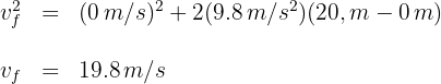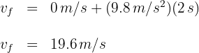 1 Elegimos la dirección hacia abajo como positiva y notamos que la velocidad inicial es cero