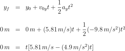 5Como en la parte vertical del movimiento la aceleración es constante, se tiene un problema de MRUA, por ello empleamos la fórmula