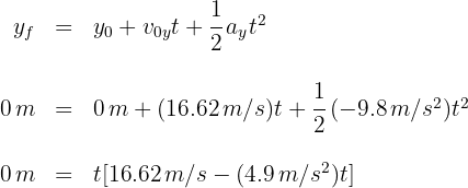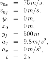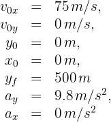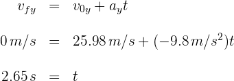 5Como en la parte vertical del movimiento la aceleración es constante, se tiene un problema de MRUA, por ello sustituimos los datos conocidos en la fórmula