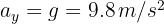 Establecemos las direcciones hacia arriba y a la derecha como positivas; con ello, la aceleración vertical es