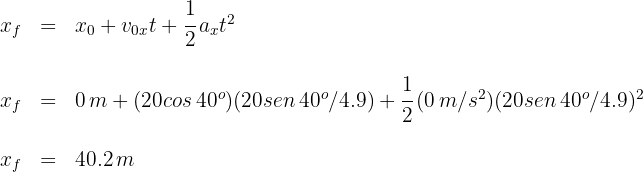 Luego, ambos alcances horizontales son iguales. De hecho, los alcances de cualesquiera dos ángulos complementarios son iguales.