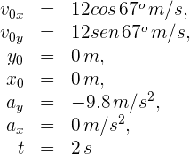 respecto a la horizontal. ¿Cuál es su altura a los 2 segundos?