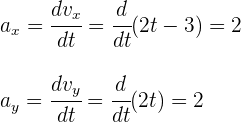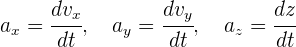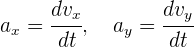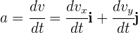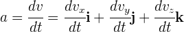 Al ser la aceleración instantánea un vector, entonces sus componentes son iguales a la derivada de las componentes de la velocidad