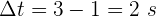 están en metros y el tiempo en segundos, encuentra el desplazamiento realizado al moverse de 1 a 3 segundos.