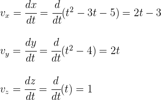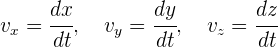 Al ser la velocidad instantánea un vector, entonces sus componentes son iguales a la derivada de las componentes de la posición