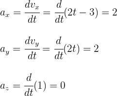 Lo anterior significa que al igual que para el caso de dimensión 2, la aceleración instantánea es igual a la derivada de la función de velocidad