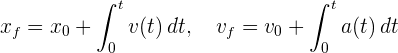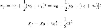 Cuando la aceleración es constante, podemos encontrar la posición final a partir de las velocidades inicial, la aceleración constante y el tiempo, sustituyendo la expresión de la velocidad final