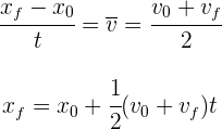 Cuando la aceleración es constante, podemos encontrar la posición final a partir del tiempo y las velocidades inicial y final aplicadas en la fórmula de la velocidad promedio
