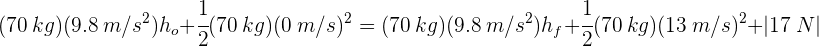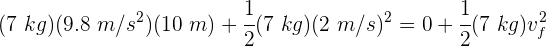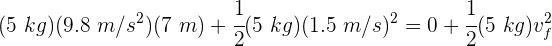 2En el punto final, la masa es 5 kg, la altura es cero y no conocemos la velocidad. En el punto inicial, la altura es 7 m y la velocidad es 1.5 m/s. Sustituimos los datos en la ecuación anterior