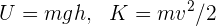 1 Un objeto de masa m se deja caer desde una altura h. Si no se considera la fricción, los valores de las energía potencial y cinética en la altura h son...