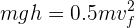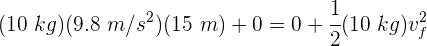 2En el punto inicial, la velocidad es cero y la altura es 15 m. En el punto final, la altura es cero y no conocemos la velocidad. Sustituimos los datos en la ecuación anterior