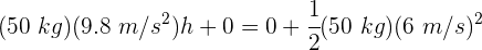 2En el punto inicial, la velocidad es cero y la altura h es deconocida. En el punto final, la altura es cero y la velocidad es de 6 m/s. Sustituimos los datos en la ecuación anterior