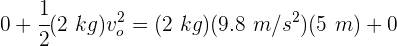 2En el punto final, la velocidad es cero y la altura es 5 m. En el punto inicial, la altura es cero y no conocemos la velocidad. Sustituimos los datos en la ecuación anterior