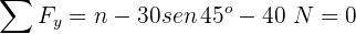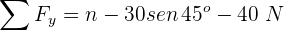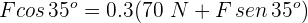 Un objeto de 40 N descansa sobre una superficie horizontal y es empujado por una fuerza de 30 N que forma un ángulo de