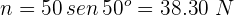Un objeto de peso 50 N se encuentra en reposo sobre un plano inclinado a