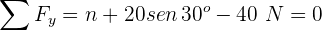 Un objeto de 40 N descansa sobre una superficie horizontal. Encuentra la fuerza normal que actúa sobre el objeto.