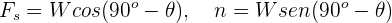 de la pendiente de un plano inclinado de manera que un bloque de peso W se mantenga en reposo.