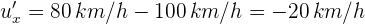 Dos automóviles se mueven en la misma dirección y sentido. El automóvil A se mueve a 80 km/h y el automóvil B se mueve a 100 km/h. ¿Cuál es la velocidad de A respecto de B?